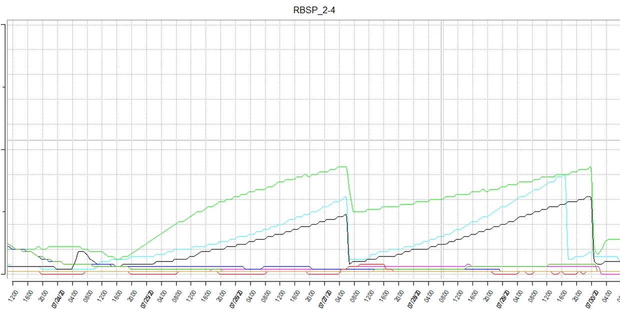 The soil moisture sensors come with software that plots soil moisture values of each sensor (each sensor has its own color) attached to a logger (which holds up to 8 sensors) over time. This allows for quick comparison of sensors and for the ability to see sensors dry over time (line goes up), wet with a rain event (line goes down), and then begin to dry again. It also shows how sensors in different locations wet at different times from each other, due to their location on the site and depth. However, there isn't a way to visualize where these sensors are on the site or a way to look at an entire site, because only one logger can be plotted at a time.