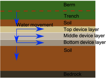 We need to track the movement of water on the surface, into the Infiltech® device, through the Infiltech® system, and into the surrounding soil.