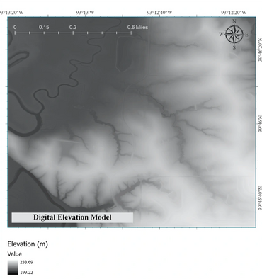 LIDAR imagery and site surveys are utilized to produce a Digital Elevation Model (DEM) that describes the topography such as slopes, flow directions, and location and extent of depressions.